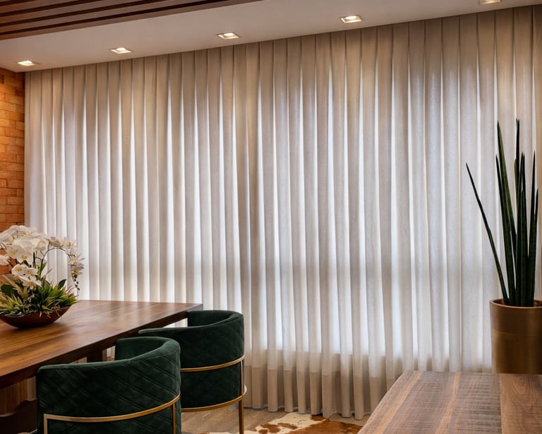 Em nosso ateliê, cada projeto é pensado para harmonizar com seu espaço, e cada cortina é feita sob medida, com cuidado e atenção aos detalhes, trazendo conforto e estilo que só cortinas sob medida oferecem.